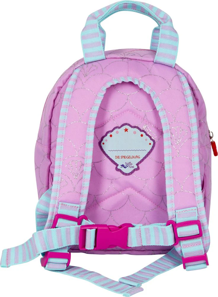 Colorato, comodo e pieno di fantasia! Questo delizioso zainetto lilla con sirena glitterata è il compagno perfetto per tutte le bambine che amano il mondo sottomarino. Leggero ma resistente, è realizzato in poliestere riciclato, con spallacci regolabili, manici a righe, dettagli glitter e una tasca frontale con zip.